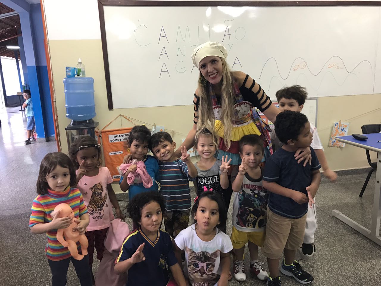 Dia de contação de histórias no Pré I é assim, todas as sextas-feiras a professora Eliane conta história e faz encenação com o personagem, durante essas aulas ela conta com o apoio da professora Veronice.
